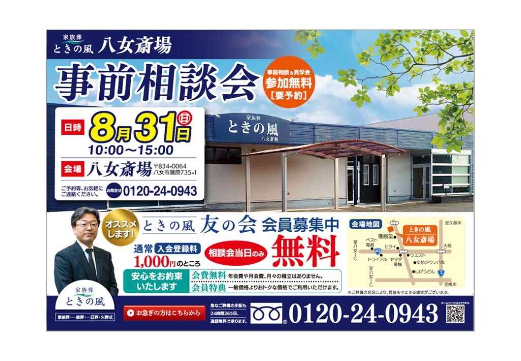 8月31日(日)八女斎場の事前相談会を開催します。
